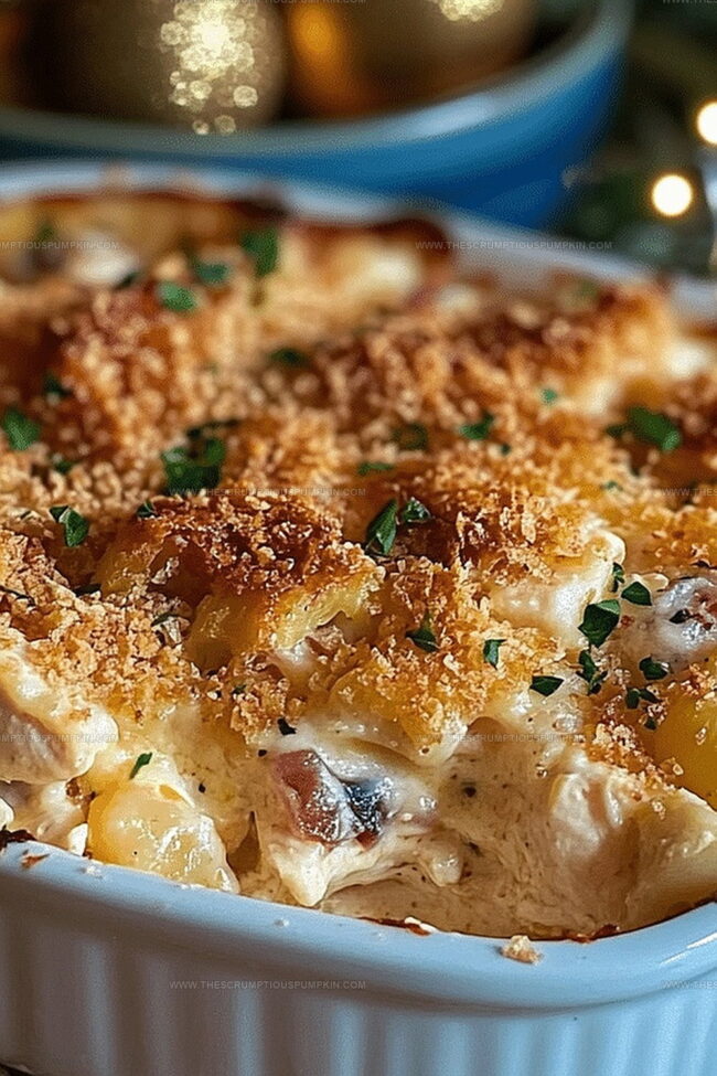 - Sprinkle the seasoned breadcrumb mixture evenly across the top of the casserole, creating a crisp, golden-brown crust.