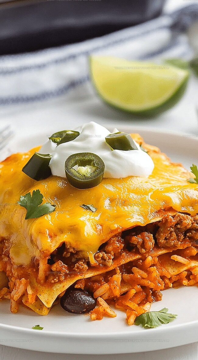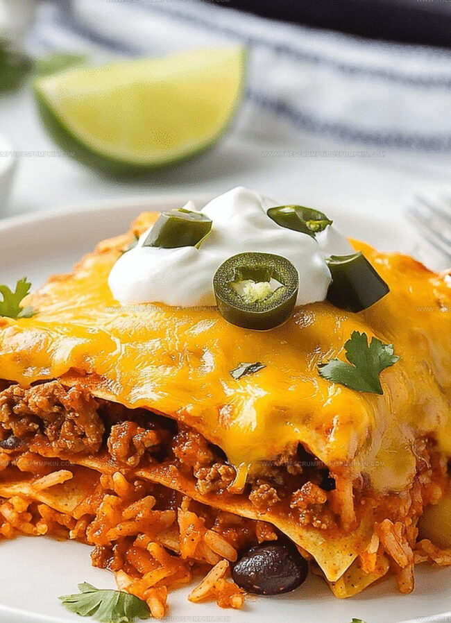 Hearty Mexican beef enchilada casserole delivers layers of spicy comfort nestled with fluffy rice. Melted cheese and rich sauce promise a delightful meal you’ll savor with pure culinary satisfaction.