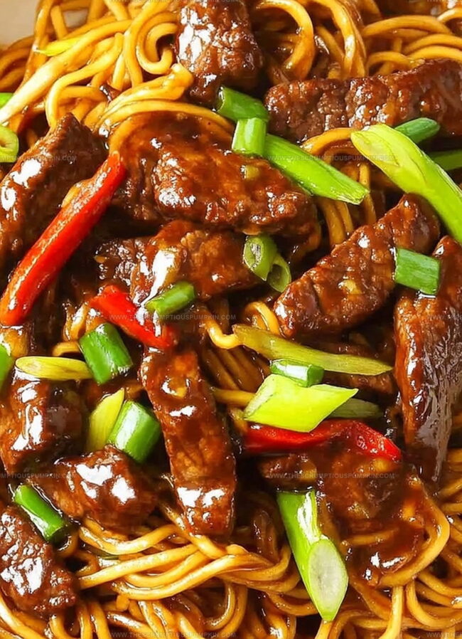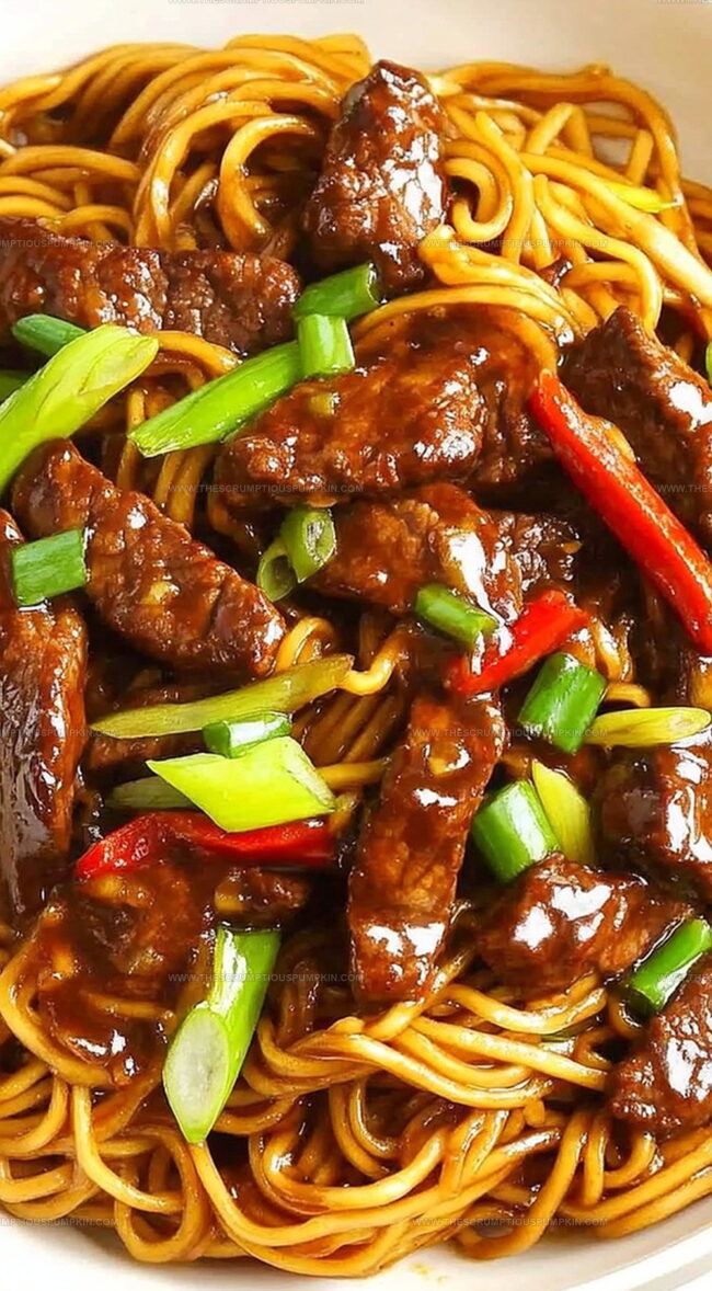 Silky noodles wrap around succulent beef pieces, catching every drop of that irresistible sticky sauce.