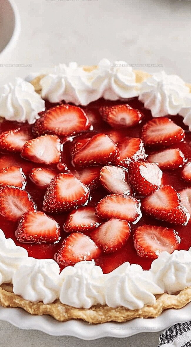 - Once set, garnish with dollops of fresh whipped cream just before serving to enhance the pie’s visual appeal and add a creamy contrast to the bright, fruity filling.