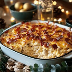 Hearty chicken bacon ranch casserole brings comfort right to your dinner table with its creamy, satisfying layers.