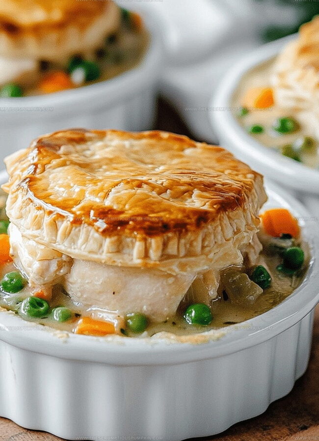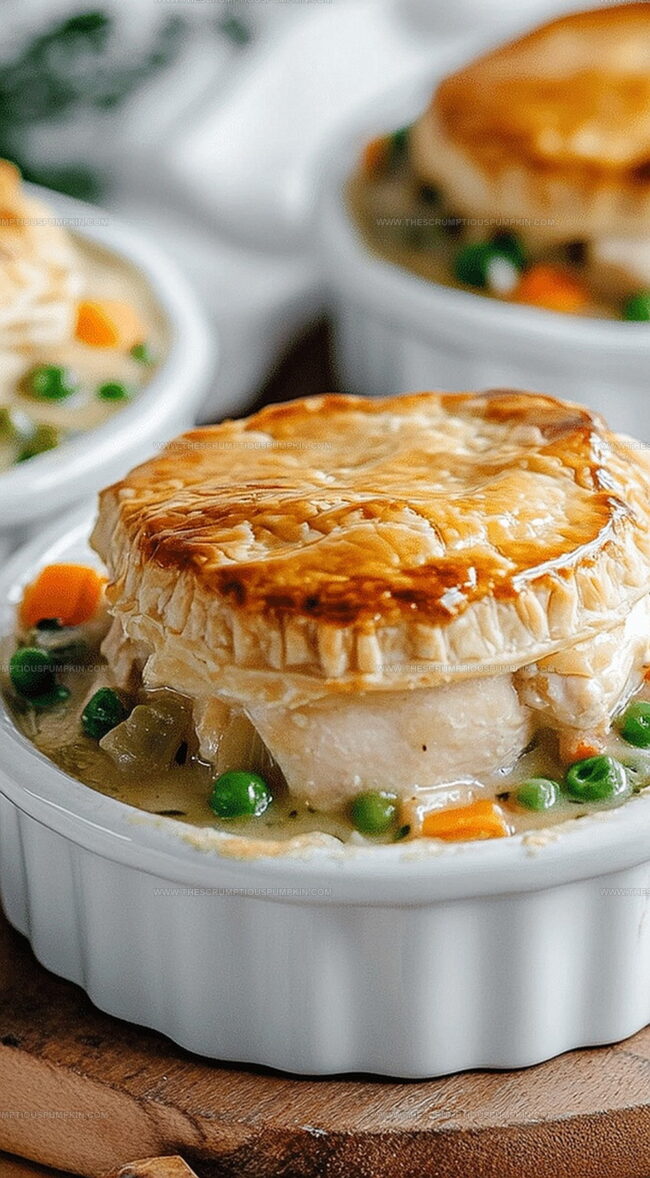 Flaky layers of golden pastry cradle tender chicken and colorful vegetables in a creamy sauce.