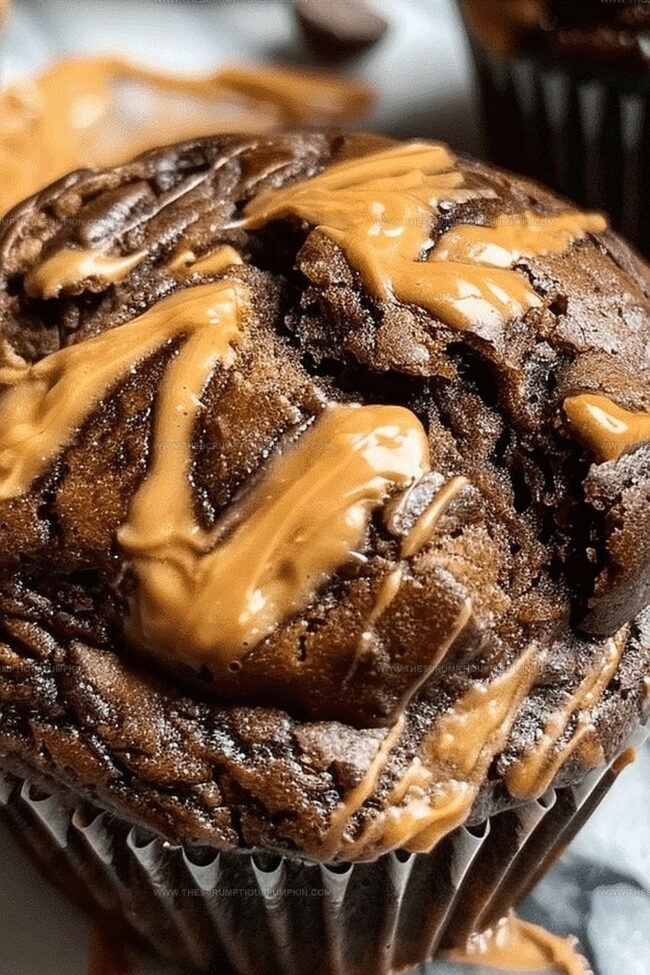 Chocolate and peanut butter swirl muffins dance with decadent flavor in this irresistible treat.