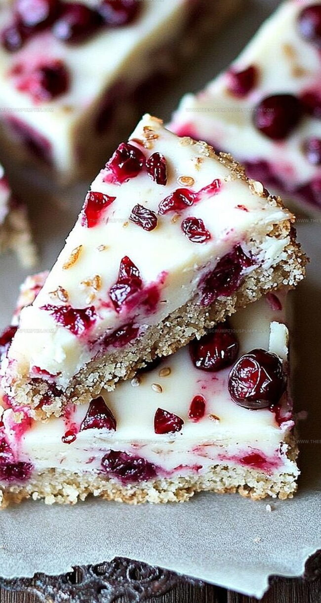 Creamy, dreamy cranberry bliss bars dance between decadent dessert and holiday magic.