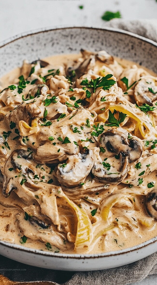 Comforting Russian-inspired Chicken Stroganoff delivers rich, velvety goodness with tender meat nestled in silky sour cream sauce. Hearty noodles and succulent chicken promise a delightful meal that satisfies deep hunger pangs and warms your culinary soul.