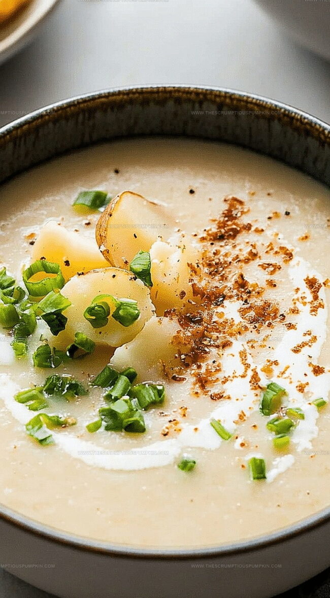 - Ladle the creamy soup into serving bowls, garnishing with crispy bacon pieces, shredded cheddar cheese, and freshly chopped scallions for added texture and visual appeal.