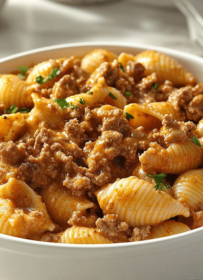 Comforting creamy beef and shells bring Italian-American pasta magic to dinner tables with hearty ground beef and tender pasta shells. Cheesy, rich sauce blends perfectly, creating a quick family-favorite meal you’ll want to savor again and again.
