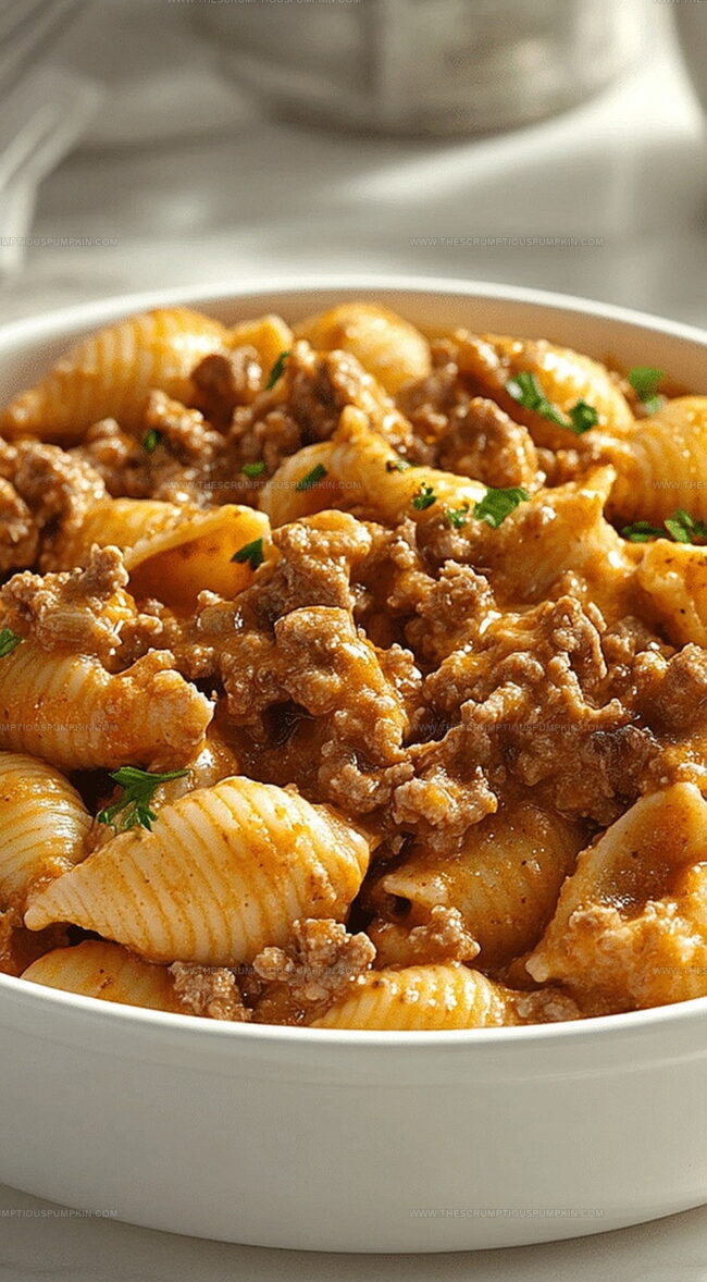 Pasta shells capture rich beef and creamy sauce in every forkful, creating magic on your plate.