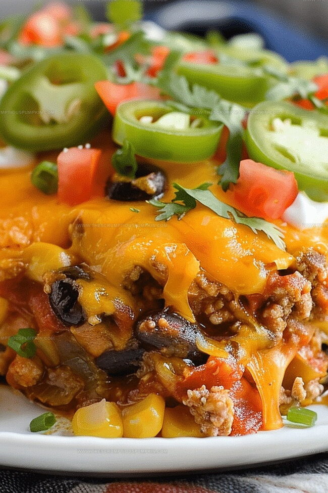 - Remove from the oven and garnish with preferred toppings before serving the delectable taco casserole.