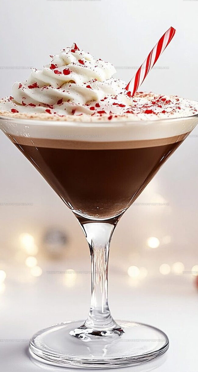 Sip seasonal cheer with this festive peppermint mocha holiday martini, blending rich chocolate, smooth vodka, and cool peppermint into a delightful cocktail. Garnished with candy cane and chocolate drizzle, you’ll enjoy a merry twist on classic holiday flavors.