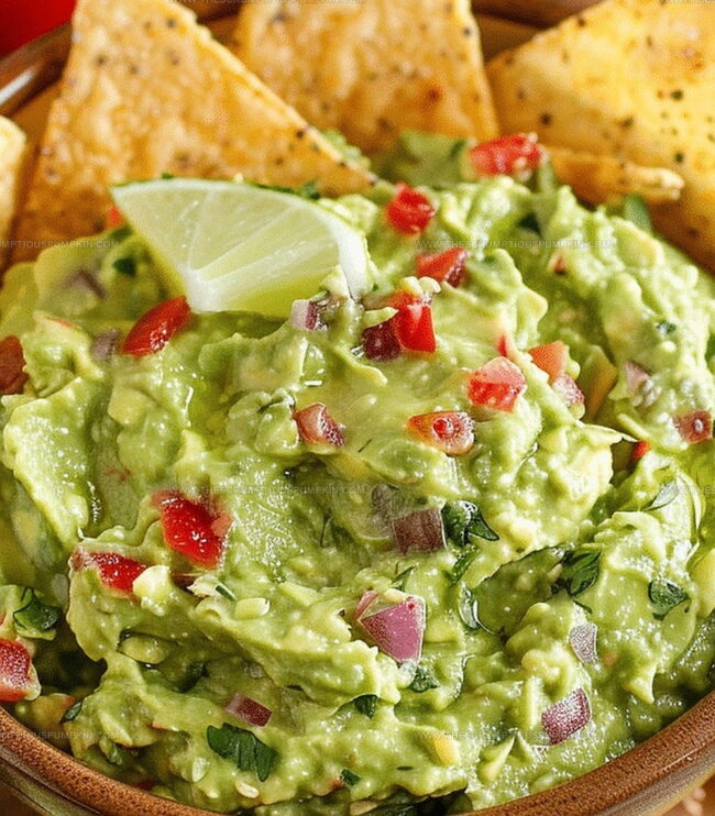 Classic Mexican guacamole with fresh cilantro delights taste buds and brings zesty excitement to snack time. Creamy avocados mashed with lime, onion, and jalapeño create an irresistible dip you cannot stop eating.