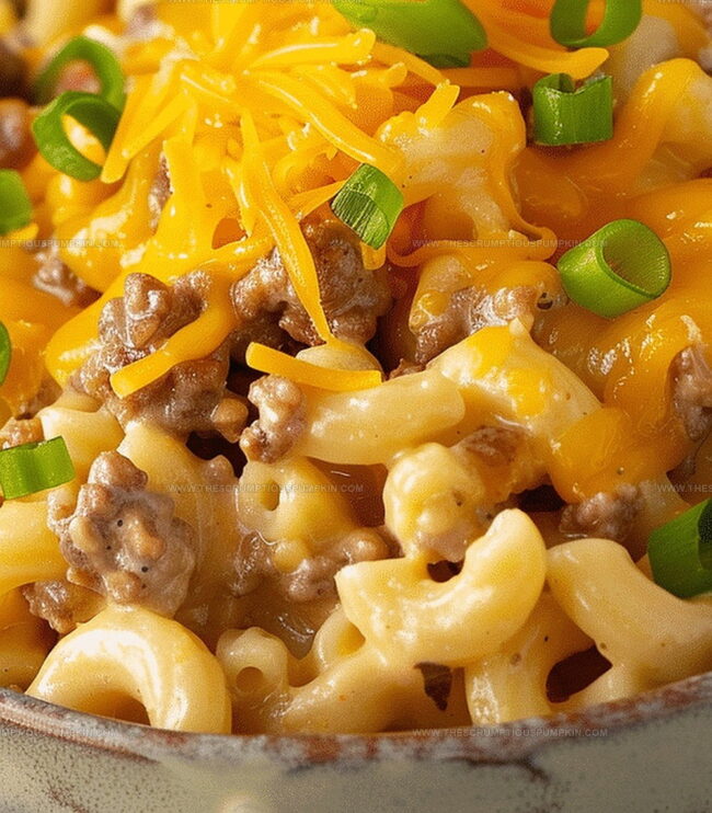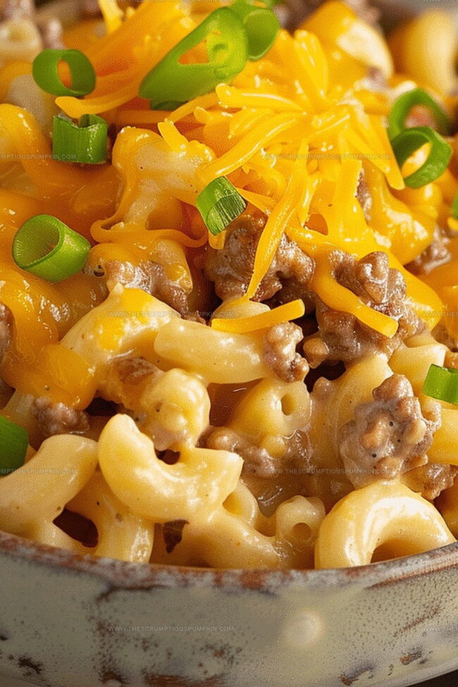 - Merge uncooked macaroni with the savory beef concoction in a spacious mixing bowl, ensuring every pasta strand is lovingly coated.