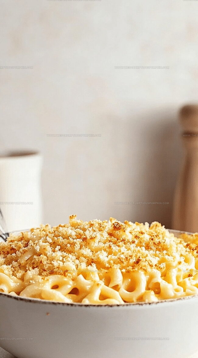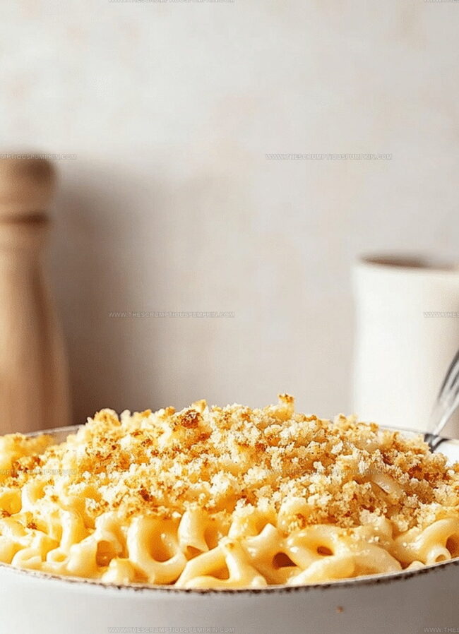 Crispy breadcrumb topping adds a delightful crunch to the velvety pasta beneath.