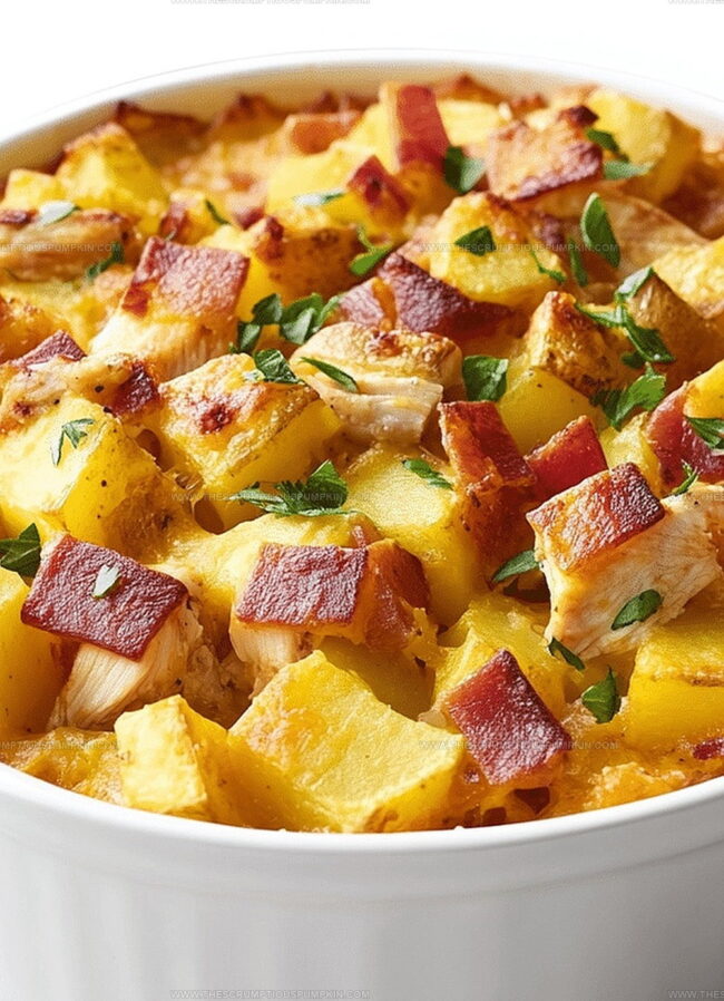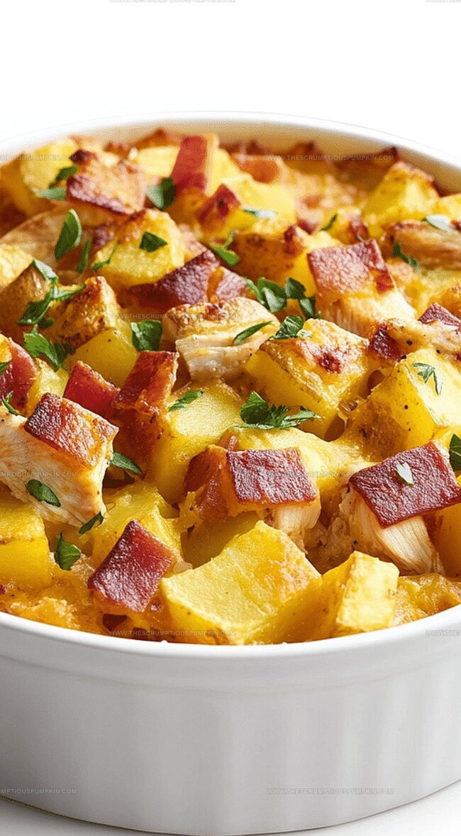 Hearty loaded chicken and potato casserole brings comfort and flavor to dinner tables across North America. Crispy potatoes, melted cheese, and succulent chicken create a satisfying meal that keeps families coming back for seconds.