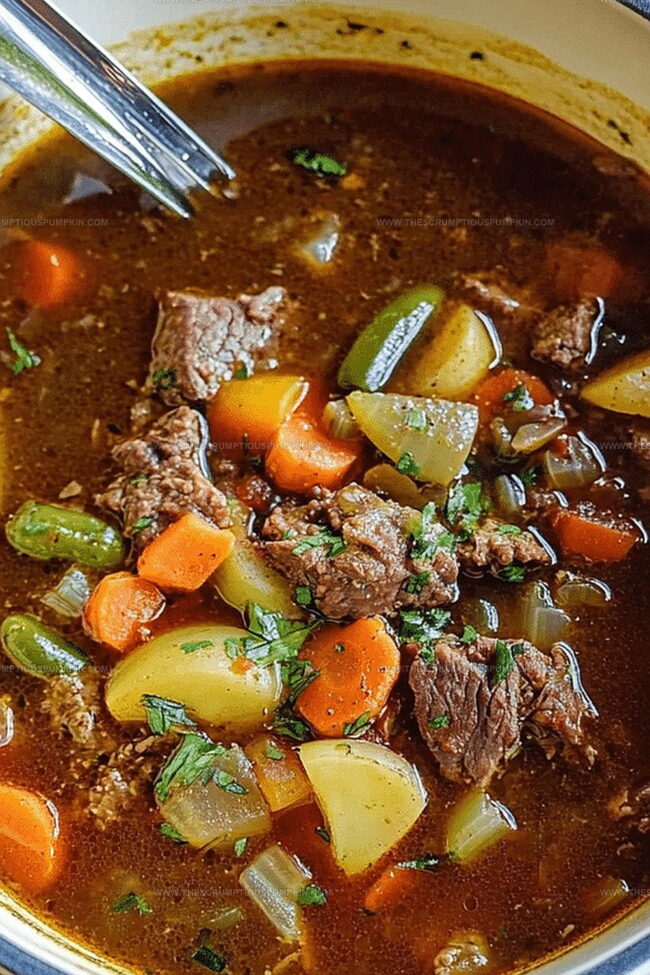 Memories of comfort swirl around this hearty vegetable beef soup that defined countless winter evenings in our kitchen.