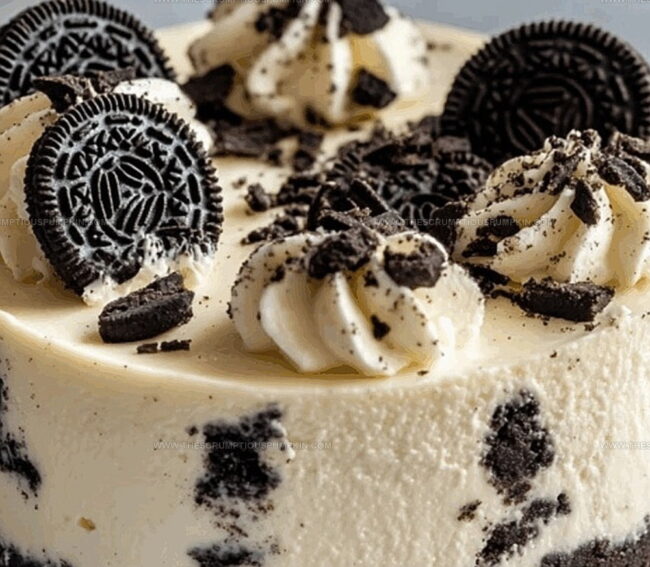 - Garnish with whole and crushed Oreo cookies, creating an attractive decorative pattern.