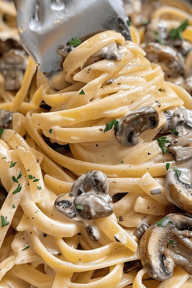 Gently toss and coat every strand with the rich, creamy mushroom sauce, ensuring even distribution.