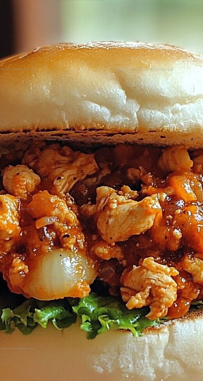 - Lavishly spoon the spicy chicken mixture onto prepared buns, optional garnish of fresh parsley adds a vibrant finishing touch.