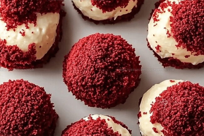 Indulgent red velvet cheesecake bites blend creamy richness with classic Southern charm, creating a dessert that dances between elegant and playful. Chocolate lovers will savor these miniature treats that promise pure bliss in every delectable bite.