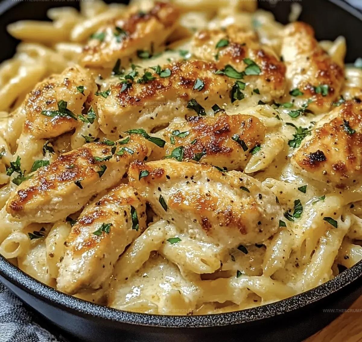 Creamy sauce cascades over tender chicken, creating an irresistible melody of flavors.
