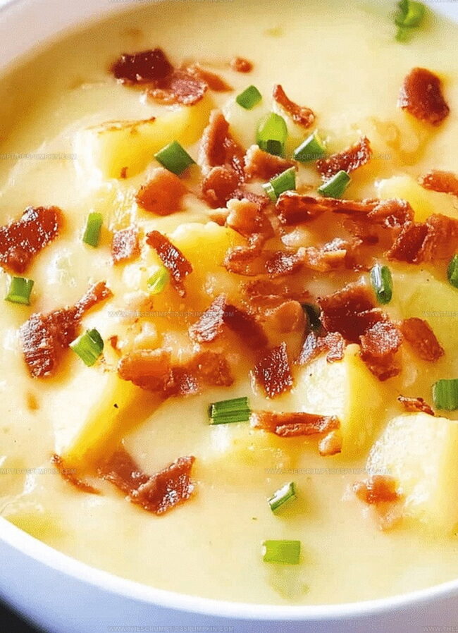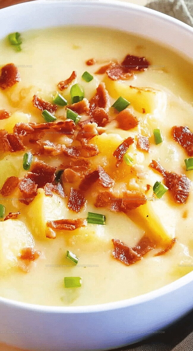 - Plate the steaming soup, garnishing with crisp, rendered bacon bits and delicate green onion ribbons for a final flavor and textural enhancement.