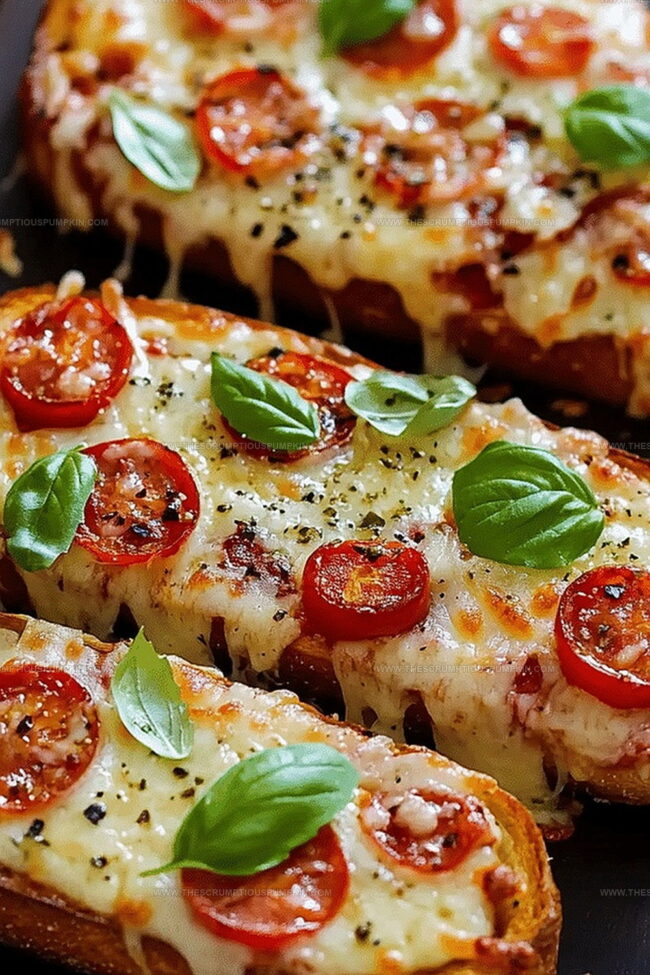 Crispy baguettes create the perfect canvas for melted cheese and savory toppings.