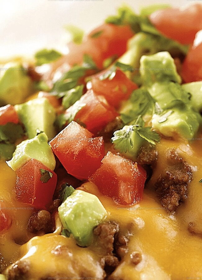 - Evenly distribute seasoned beef across the chips, followed by a generous blanket of shredded cheese that will melt into gooey perfection.