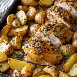 Cut potatoes into even-sized wedges and ensure they’re well-coated with oil. Spread them in a single layer around the chicken, giving them enough space to crisp up. Avoid overcrowding the pan, which can make them steam instead of roast.