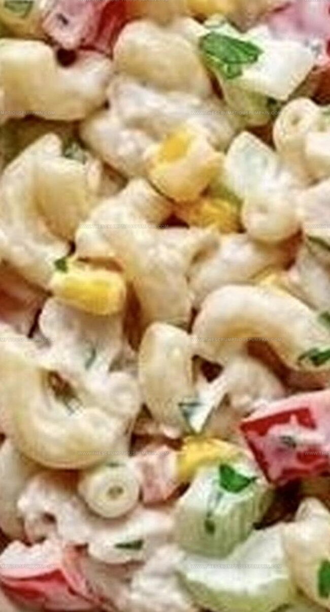 - Add cooled pasta to the mixture, carefully tossing to coat every pasta piece with the zesty dressing, creating a harmonious blend of textures and flavors.